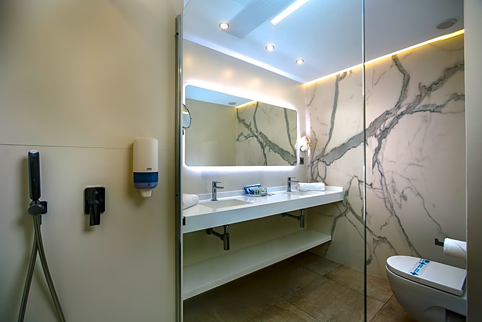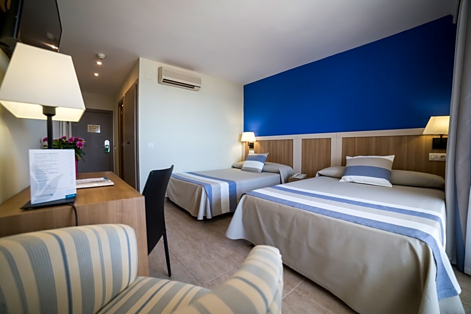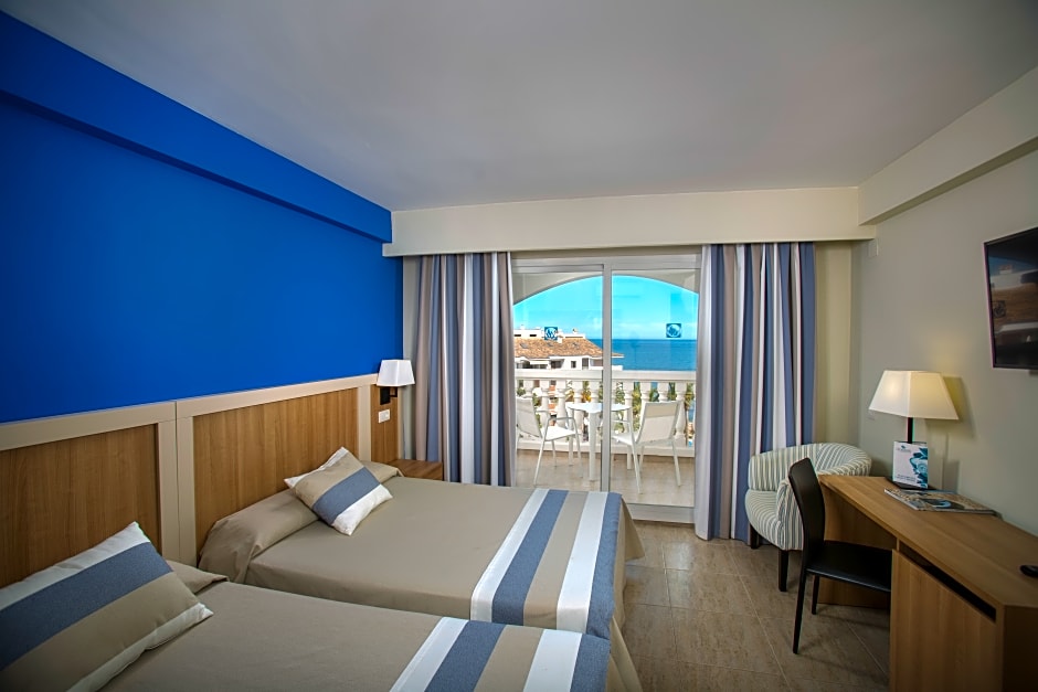 This deluxe room has full sea views and includes the following amenities: * Welcome drink and a gift from the hotel. * A bottle of Cava and a box of sweets. * Daily newspaper. * Pillow menu. * Beach and pool towels. * Bathrobes. * Free safe box. * 1-hour entry to the spa, per day. * Cap and slippers for the spa, per person. * Mini-bar with nonalcoholic drinks. * 20 % discount in beauty treatments.